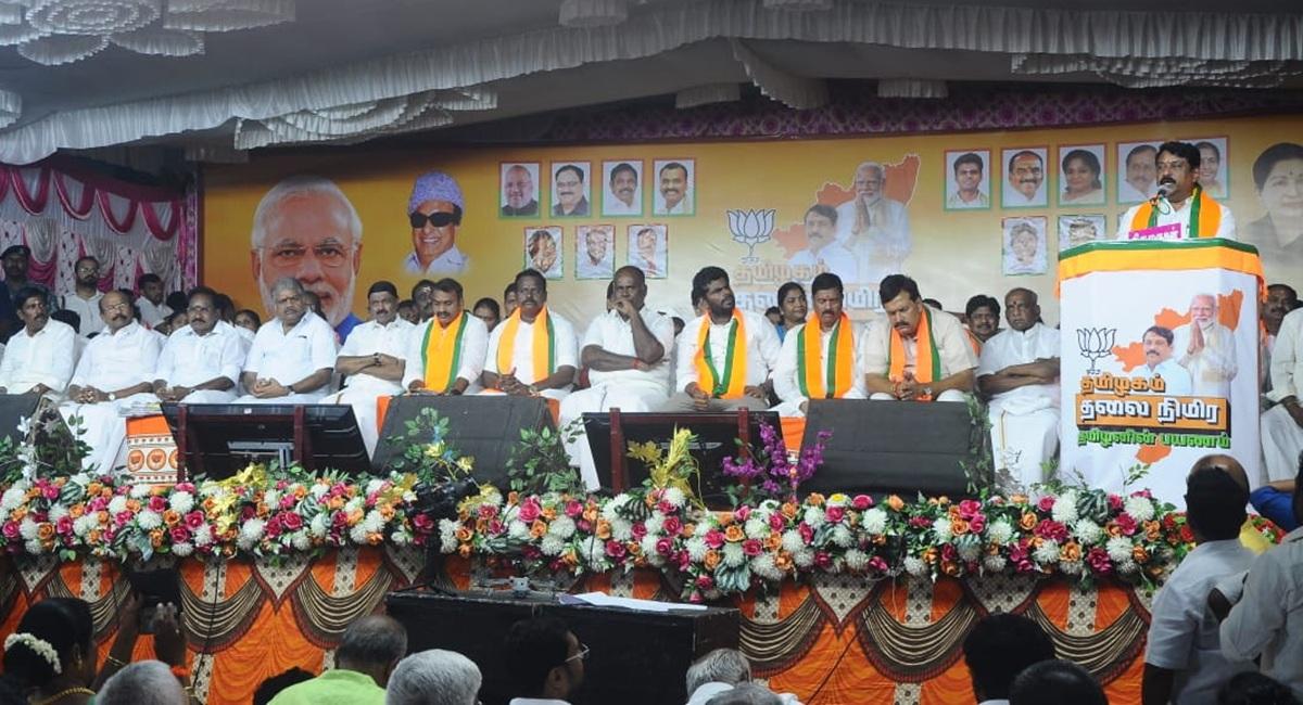 மத்திய அமைச்சர் எல்.முருகன், பாஜக மேலிடப் பார்வையாளர் அரவிந்த் மேனன், இணைப் பார்வையாளர் சுதாகர்ரெட்டி, தமாக தலைவர் ஜி.கே.வாசன், புதியநீதி கட்சித் தலைவர் ஏ.சி.சண்முகம், அதிமுக சார்பில் முன்னாள் அமைச்சர்கள் செல்லூர் கே.ராஜூ, ஆர்பி. உதயகுமார் ராஜன்செல்லப்பா எம்எல்ஏ, பாஜக முன்னாள் தலைவர் அண்ணாமலை, மூத்ததலைவர்கள் பொன்.ராதா கிருஷ்ணன், எச்.ராஜா, தேசிய மகளிரணி தலைவர் வானதி சீனிவாசன் உள்ளிட்டோர் பங்கேற்றனர். சுற்றுப்பயண பாடலை அண்ணாமலையும், குறும்படத்தை மத்திய அமைச்சர் எல்.முருகனும் வெளியிட்டனர்.