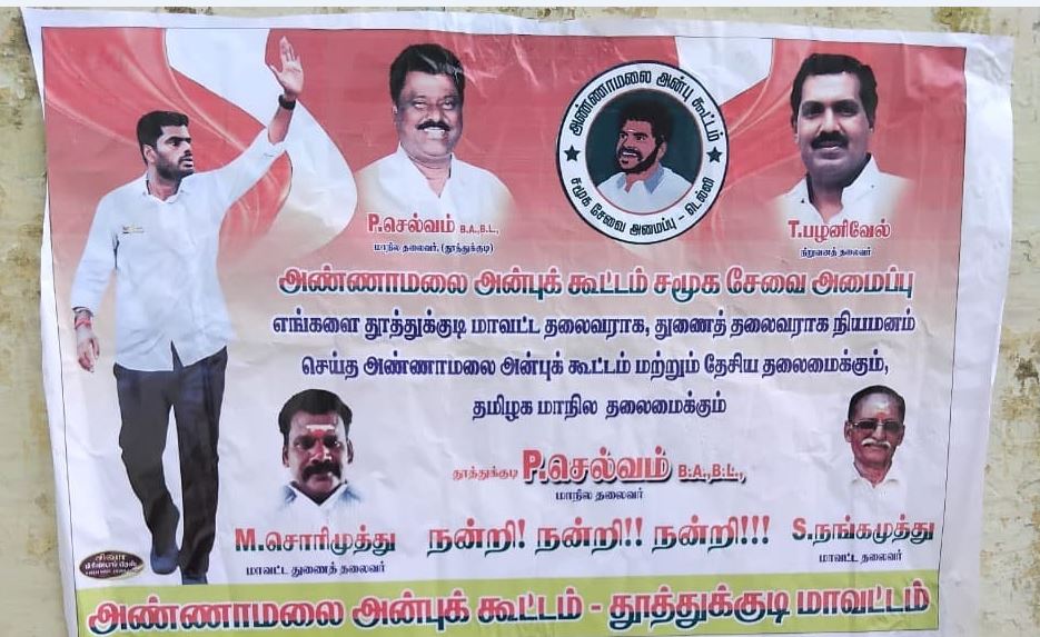 நெல்லை மாவட்டத்தைத் தொடர்ந்து தூத்துக்குடியிலும் முன்னாள் பா.ஜ.க. தலைவர் அண்ணாமலை பெயரில் அமைப்பு தொடங்கப்பட்டிருக்கிறது.