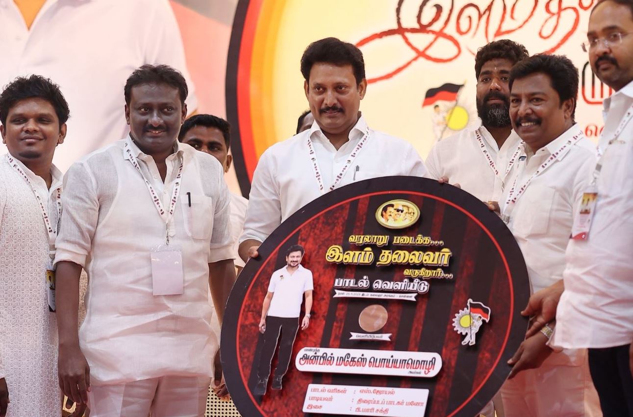 இந்த விழாவில், ‘வரலாறு படைக்க இளம் தலைவர் வருகிறார்’ என்ற பாடலை பள்ளிக் கல்வித்துறை அமைச்சர் அன்பில் மகேஸ் பொய்யாமொழி வெளியிட்டார். மாநில இளைஞரணி துணை செயலாளர்கள் பெற்றுக்கொண்டனர்.