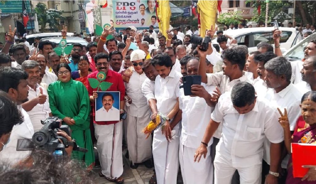 மறைந்த முதல்வர்கள் எம்.ஜி.ஆர், ஜெயலலிதா வேடமணிந்தவர்களுடன் வந்து விருப்பமனுவை அளித்தார். அதாவது மதுரையில் உள்ள சோழவந்தான் தொகுதியை தவிர்த்து அனைத்துத் (9) தொகுதிகளிலும் அ.தி.மு.க. பொதுச் செயலாளர் எடப்பாடி பழனிசாமி போட்டியிட வேண்டும் என விருப்ப மனு அளித்தார்.