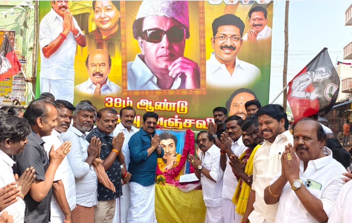 ‘‘புரட்சித்தலைவரின் 38வது ஆண்டு நினைவு தினத்தையொட்டி தமிழகம் முழுவதும் கழகப் பொதுச் செயலாளர் எடப்பாடியாரின் ஆணைக்கிணங்க, புரட்சித்தலைவரின் திருவுருவப்படத்தை அலங்கரித்து மலர் தூவி அஞ்சலி செலுத்தி ஏழை, எளிய மக்களுக்கு அன்னதானம் வழங்கப்பட்டு வருகிறது.