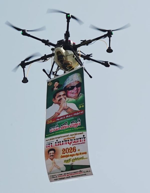 அ.தி.மு.க. பொதுச் செயலாளர் எடப்பாடியாரின் ஆணைக்கிணங்க, புரட்சித்தலைவரின் 38வது ஆண்டு நினைவு தினத்தையொட்டி, அ.தி.மு.க. மருத்துவரணி சார்பில் புரட்சித்தலைவர் திருவுருவப்படத்திற்கு மாலை அணிவித்து, அஞ்சலி செலுத்தி, டிரோன்கள் மூலம் நினைவு தின பதாகைகளை பறக்க செய்து, பொதுமக்களுக்கு அன்னதானத்தை கழக மருத்துவரணி இணைச் செயலாளர் டாக்டர் பா.சரவணன் வழங்கி கூறியதாவது;