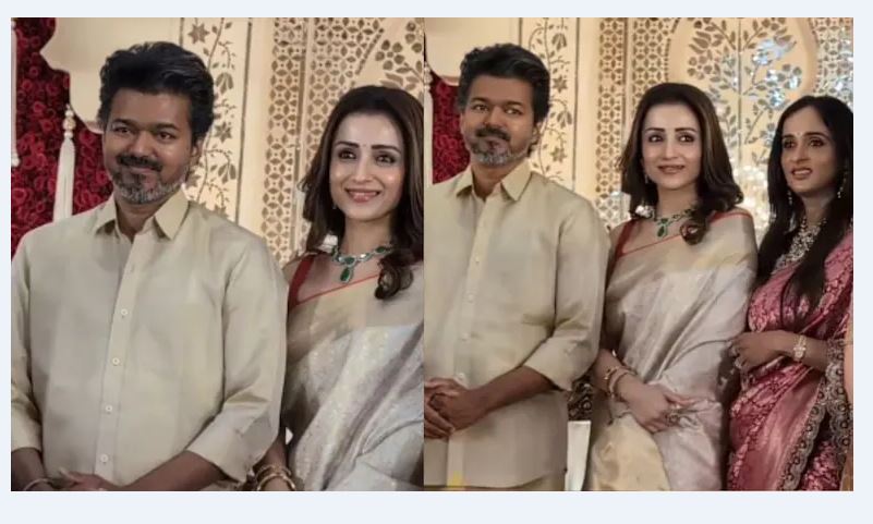இந்த நிலையில் கல்பாத்தி சுரேஷ் மகன் திருமண விழாவில் விஜய்யும் திரிஷாவும் ஜோடியாக வந்தனர். இருவருமே ஒரே மாதிரி நிறத்தில் மேட்சிங் மேட்சிங்காக ஆடை அணிந்திருந்தனர். இதை பார்த்த ரசிகர்கள் அதிர்ச்சி அடைந்தனர்.பொதுவாக இது போன்ற விழாக்களுக்கு தனியே வரும் விஜய், இந்த முறை இரு நிகழ்வுகளுக்கு திரிஷாவுடன் சென்றது அதிர்வலையை ஏற்படுத்தியுள்ளது. அதிலும் இது எதேச்சையான சந்திப்பு கூட இல்லை. இருவரும் ஒரே காரில் வந்து இறங்கினர். இதுகுறித்து நெட்டிசன்கள் கூறுகையில், இதுவரை இருவரும் ஒன்றாக வெளியே வரவில்லை. ஆனால் தற்போது அண்மைக்காலமாக இருவரும் ஒன்றாகவே பொது நிகழ்ச்சிகளில் கலந்து கொள்கிறார்கள்.