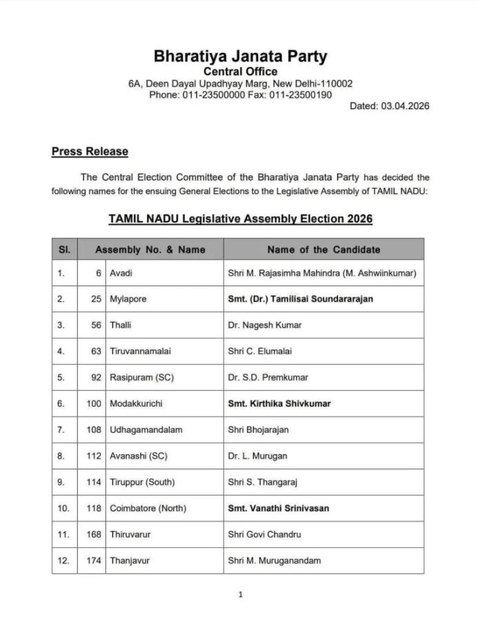 பா.ஜ.க. வேட்பாளர் பட்டியல் எப்போது வெளியாகும் என்று எதிர்பார்த்த நிலையில், ஒருவழியாக இன்று வெளியாகியிருக்கிறது.